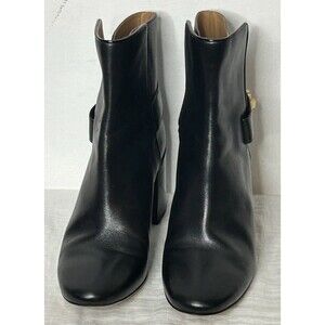 Tory Burch Kira Leather Booties Women's Boots 9M Black Gold Hardware Buckle EUC