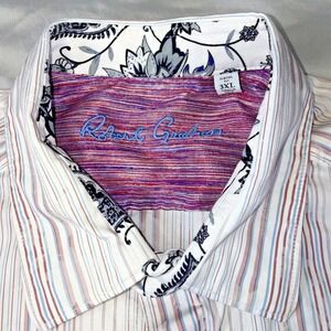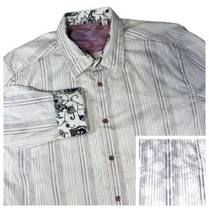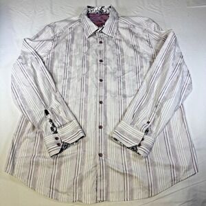 Robert Graham Paisley Floral StripedDress Shirt Classic Fit Flip Cuffs Men's 3XL