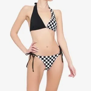 Black & White Checkered Side Tie Swim Bottoms Hot Topic