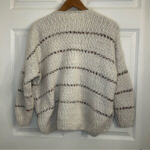 Altar'd State Textured Cream and Brown V-Neck Sweater