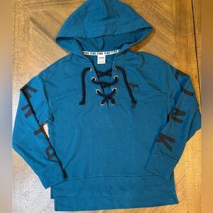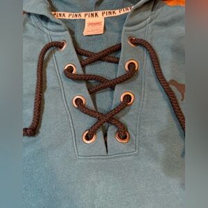 PINK VS Teal Lace Up Hooded Sweatshirt