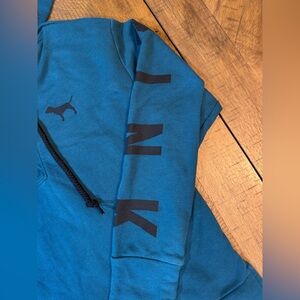 Lace up hooded sweatshirt in a beautiful deep teal color with black accents. Great condition, the 4th photo is a possible small stain below the lacing, it’s barely visible and depending on the lighting you cannot even see it but for transparency please view all images!