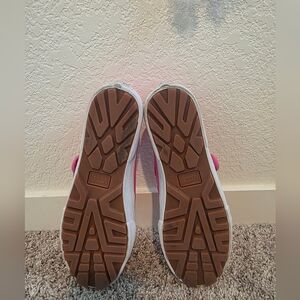 The Vans Style 93 'Pink White' (model VN0A3XTJ1IX) is a women's lifestyle sneaker that reimagines the classic Mary Jane silhouette with a chunky lug rubber outsole. Worn twice but in great condition. does have a scuff on the left inner side as pictured and pink on the right front sole as pictured, a blemish from the manufacturer. Does create dark stains from where the buckle connects as you can see in pictures but can't tell once they're buckled.