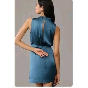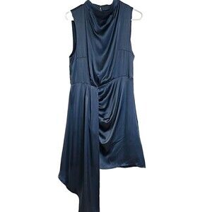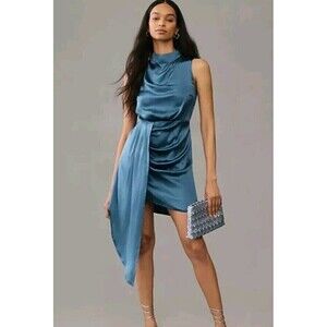 By Anthropologie Mock Neck Drape SILK Dress Blue Women’s Size 10 NWT
