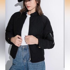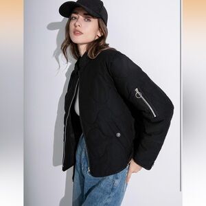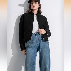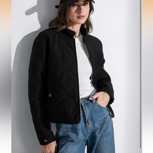 Stay stylish and warm with this black quilted jacket. Perfect for any occasion, this jacket offers both comfort and elegance.