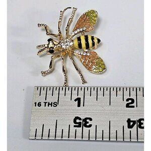 Gold Tone Bee Brooch Pin with Rhinestones & Enamel Wings Insect VTG