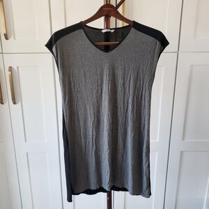 Elevate your style with this elegant two-tone short sleeve top. Featuring a chic blend of gray and black, it's perfect for any occasion. Enjoy comfort and versatility in one stylish piece.