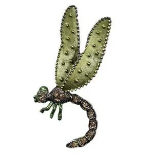 Bring a touch of whimsical nature to your outfit with this beautifully detailed dragonfly brooch. The wings are painted in shimmering green enamel with raised bead accents, while the body sparkles with faceted amber rhinestones set in a silver-tone base. A perfect accessory for insect jewelry lovers, nature enthusiasts, or collectors of unique vintage-style pins.