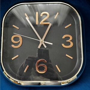 Urban Outfitters Black and Gold Square Wall Clock