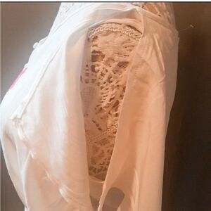 NEW JUSTFAB M Boho Embroidered Flutter Sleeve White and Red Lined Dress