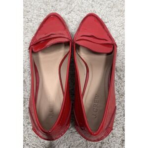 J Crew Ryan Poppy Red Patent Leather Pointy Penny Loafers Womens 7.5 Tomato Girl
