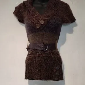 Derek Heart Brown and Purple Cowl Neck Sweater *Belt Not Included*