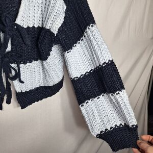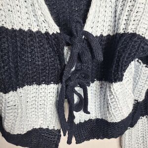 Cider Open Front Sweater Cardigan Open Front Navy Light Blue Tie Closure XL