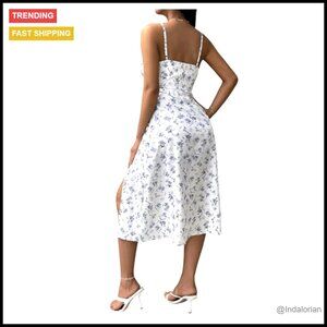 Split Thigh Spaghetti Strap Midi Floral Dress Boho Chic Summer Vacation Outfit