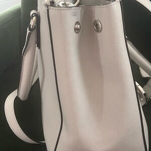 Stylish Henri Bendel satchel in light gray. Features sturdy handles and a sleek adjustable strap. Ideal for daily use.