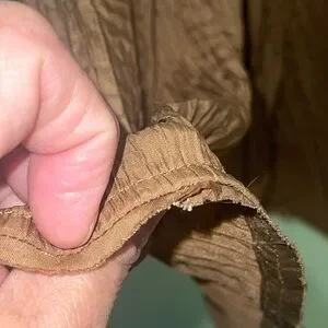 Please see last two photos of cut/flaw in hem, not very noticeable.