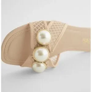 Mesh sandals embellished with faux pearls. From ZARA, in US size 7.5 (EUR 38). New with tags. Sold out in stores.