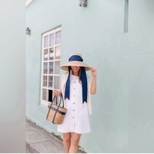 A brand new silhouette for spring! Meet the Grace dress. Featuring crisp white bengaline fabric with a removable lace collar, gold buttons, and classic buttoned patch pockets. This sleeveless shift dress is fully lined and the ideal option for the office and the weekend. It will be your absolute go-to for seasons to come!