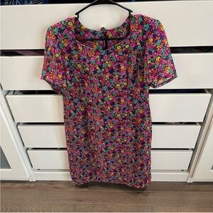 EUC pure silk Ken Scott vintage floral sheath dress, designer who did a recent collaboration with Gucci and has been featured in Vogue! This dress is hand printed, made in Italy, and has shoulder pads to provide structure. There is no size tag but the dress fits a size 6. Super gorgeous high end vintage piece!