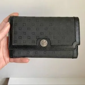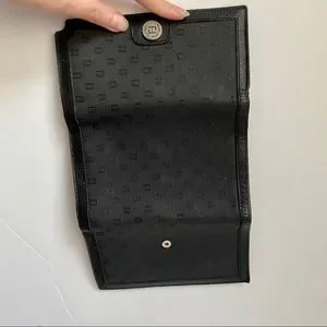 Vintage 70s Fendi Logo Print Fabric Wallet Black