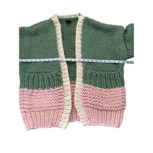 Saachi Anthropologie Bella Cardigan Chunky Sweater Green Pink Pockets One-Size