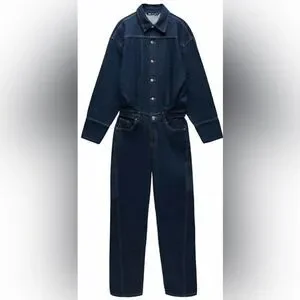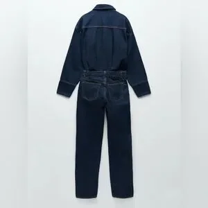 ZARA Dark Indigo Long Denim Jumpsuit - S