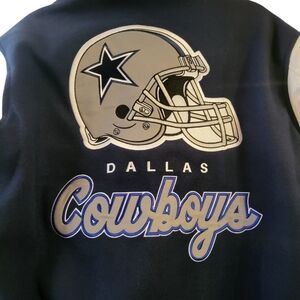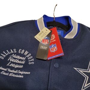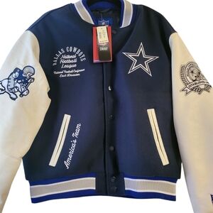 Rep America’s Team in style! ✭ This premium Dallas Cowboys varsity jacket is Brand New with Tags (NWT) and features intricate, heavy embroidery throughout—no screen prints here.