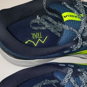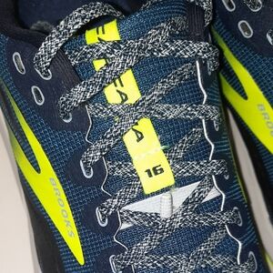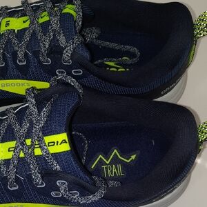 Brooks CASCADIA 16 Navy and Neon Yellow Athletic Shoes Size 11.5 Worn One Time.