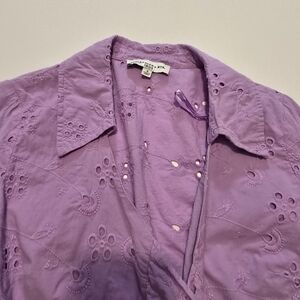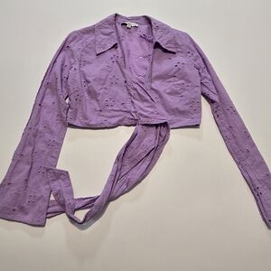 ASHLEY PARK Purple Eyelet Top Long sleeves Tie closure Size 4