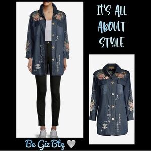🆑NWT Johnny Was Umoya Oversized Denim Blue With Floral Embroidery Jacket Large