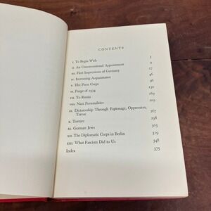 The book features detailed chapters covering Nazi personalities, the diplomatic corps in Berlin, and the impact of fascism, enriched with black and white photographs including the American Chancery in Berlin. As a compelling nonfiction narrative, it is a valuable resource for historians, political science enthusiasts, and collectors interested in pre-World War II history. This edition retains its original red cloth hardcover and contains library markings from the Will Rogers Library in Marshall, Oklahoma, adding to its provenance.