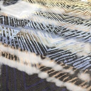 This is a unique top featuring an ombre effect from white to navy blue, with a black chevron pattern overlay.