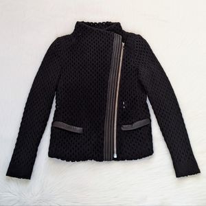 IRO 'Noa' Black Wool Knit Leather Trim Moto Jacket | Size 36