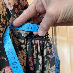 Chic floral blouse with a V-neck. Features pink blooms on a black background. Perfect for casual outings. Gorgeous blouse. Runs big. Measurements in photos.
