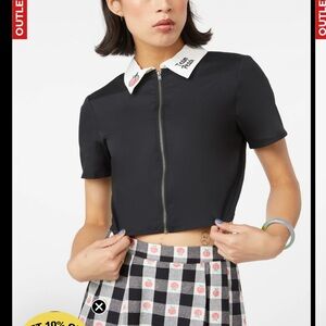 Dangerfield Black Cropped Team Peach Top with White Embroidered Collar