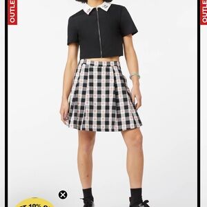 Stylish black cotton poplin cropped top featuring a white collar with peach embroidery. Front zipper closure. In great condition, worn a couple of times at most. Please note measurements in size chart, this is an XXS or size 6 Australian/ UK.