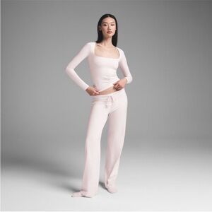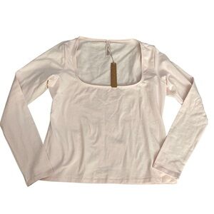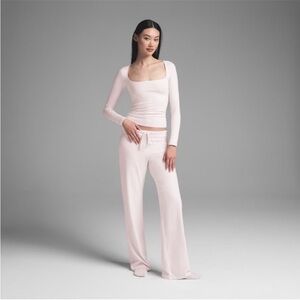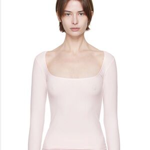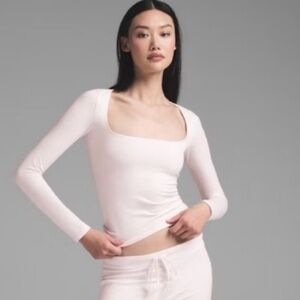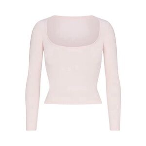Skims Cotton Jersey Scoop Neck Long Sleeve Top NWT Barely Pink