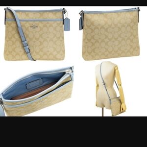 Stylish and versatile, this Coach crossbody bag features a chic tan and blue design. Perfect for everyday use, it combines elegance with functionality.