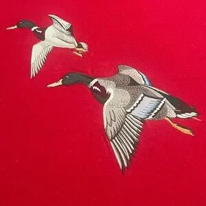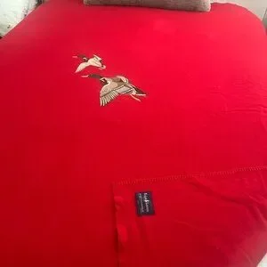 Vintage Polo Ralph Lauren wool blanket. Highly desirable rare piece from polo made of red wool and has two mallards 🦆 embroidered for a lovely touch of nature. This is perfect for any cabin or throw for the living room it is in Excellent pre owned Condition considering the age and has no major pitting or damage!!!