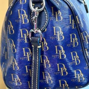 Dooney & Bourke Navy and Gold Monogram Satchel Approx. 11 x 9.5 x 4.5