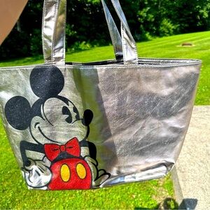 Disney Parks Original Tote Bag Metallic Silver Dual Handles Mickey Mouse