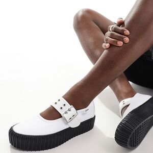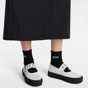 Stylish Vans dress shoes White upper with black trim. Perfect for formal events.
