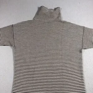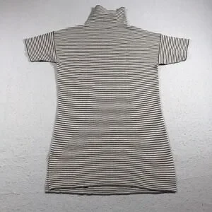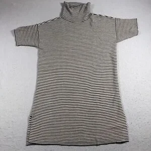 Item: Womens short sleeve turtleneck sweater dress in a fine knit stripe.