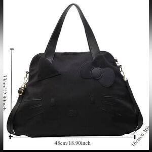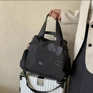 Hello Kitty Black Tote with Bow Accent duffle crossbody bag removable strap