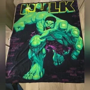 Vibrant Hulk graphic blanket with bold colors. Perfect for fans.