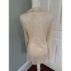This Free People Sequin Champagne Dream Top Blouse is a festive and stylish addition to any wardrobe, perfect for holiday gatherings or special occasions. The sheer sparkle and champagne pink color add a touch of glamour, while the long sleeves and collared neckline give it a classic and elegant look. Made from lightweight polyester and elastane, this blouse is comfortable to wear and easy to care for, with a hand wash only requirement. Whether you're looking to sparkle at a party or add some holiday cheer to your outfit, this blouse is sure to make a statement.