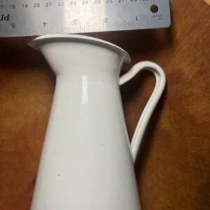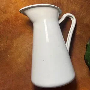 This versatile piece features a classic silhouette with a graceful handle and a clean, semi-matte white finish. Whether used as a functional water pitcher, a decorative flower vase, or a standout piece on a kitchen hutch, it adds a touch of vintage charm to any space.