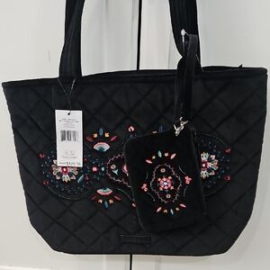 New Nwt Vera Bradley Velvet Small Vera Tote Bag, Winter Ornaments With Wallet