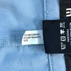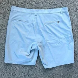 Here is a pair of Travis Mathew Golf Chino Stretch Shorts in blue. They are Men's size 40. The condition is excellent pre-owned and show no signs of wear, no stains, no pulls or issues of any kind.