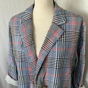 NWT J Jill Barley Relaxed Multi Blue Plaid Cotton Seersucker Boyfriend Blazer M